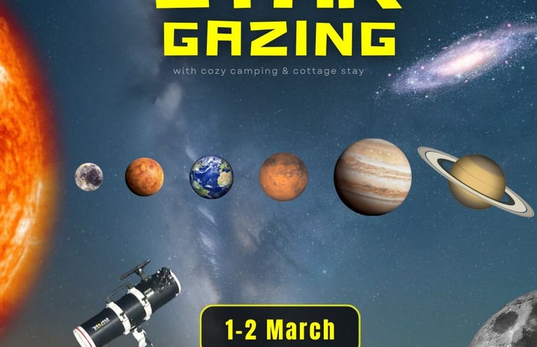 Experience the beauty of Pune's dark night sky 40 kms away from the city, full of stars. Through our powerful Telescope observe the Planets, craters of the Moon, Rings of the Saturn, Orien Nebula, Moons of Jupiter, Constellations & more
