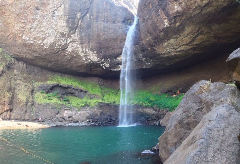 Devkund Waterfall is situated near the village of Bhira, which is approximately 100 kms from Pune. The waterfall is nestled within the dense forest of the Tamhini Ghat area and is part of the Western Ghats. Short yet rewarding trek that can be done in a day, making it an excellent choice for a weekend adventure near Pune.